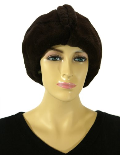 This ladies beret hat features premium rex rabbit fur with black leaf print. Stretchable elasticized interior brim for a perfect fit every time. An absolutely exqisite hat that will keep you looking your best, no matter what. One size fits all..../ Rex Rabbit Beanie Hat - Brown / beanie hat